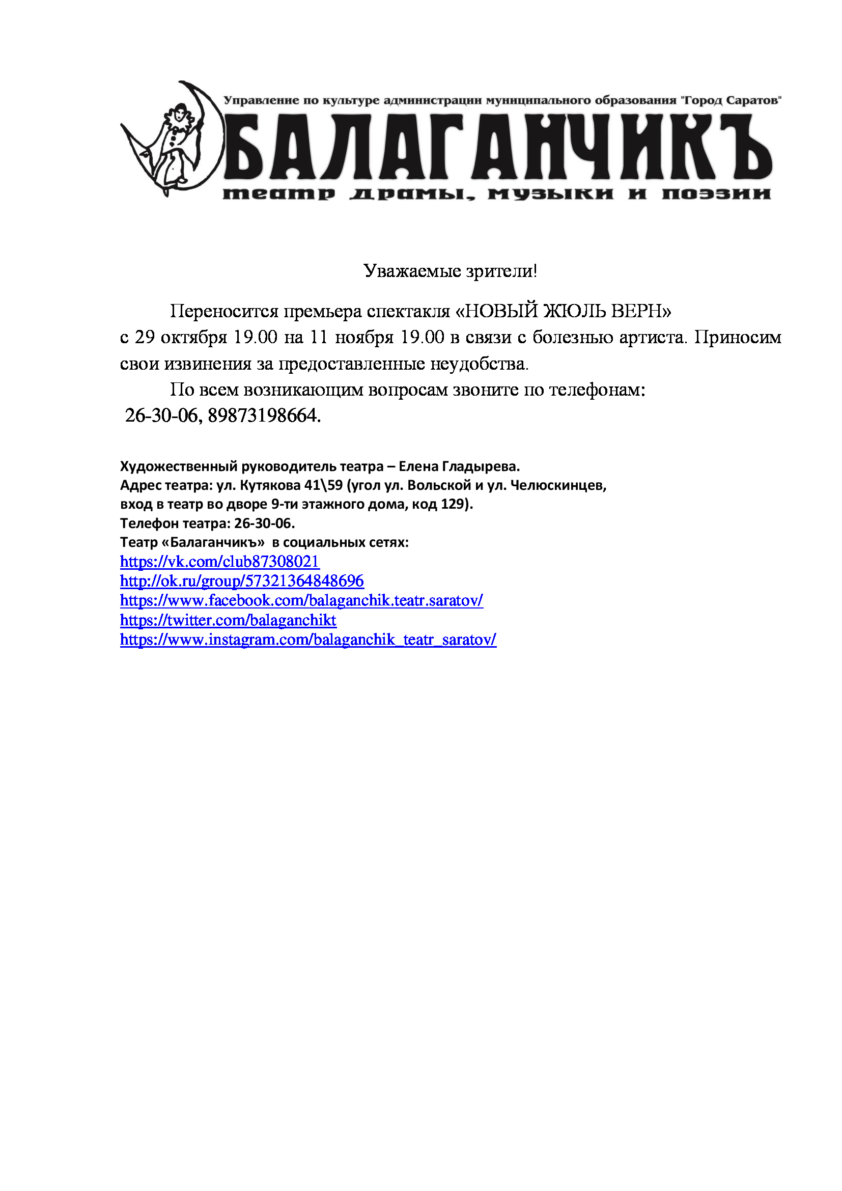 Переносится премьера спектакля «Новый Жюль Верн»