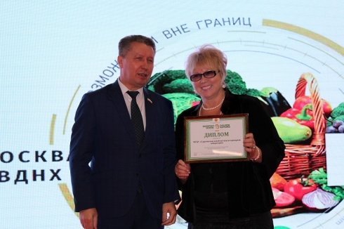 За участие учреждения во Всероссийской агропромышленной выставке «Золотая Осень-2018» Александре Алексеевне Сызранцевой в торжественной обстановке был вручен Диплом Министерства сельского хозяйства Российской Федерации, подписанный Министром Дмитрием Николаевичем Патрушевым.
