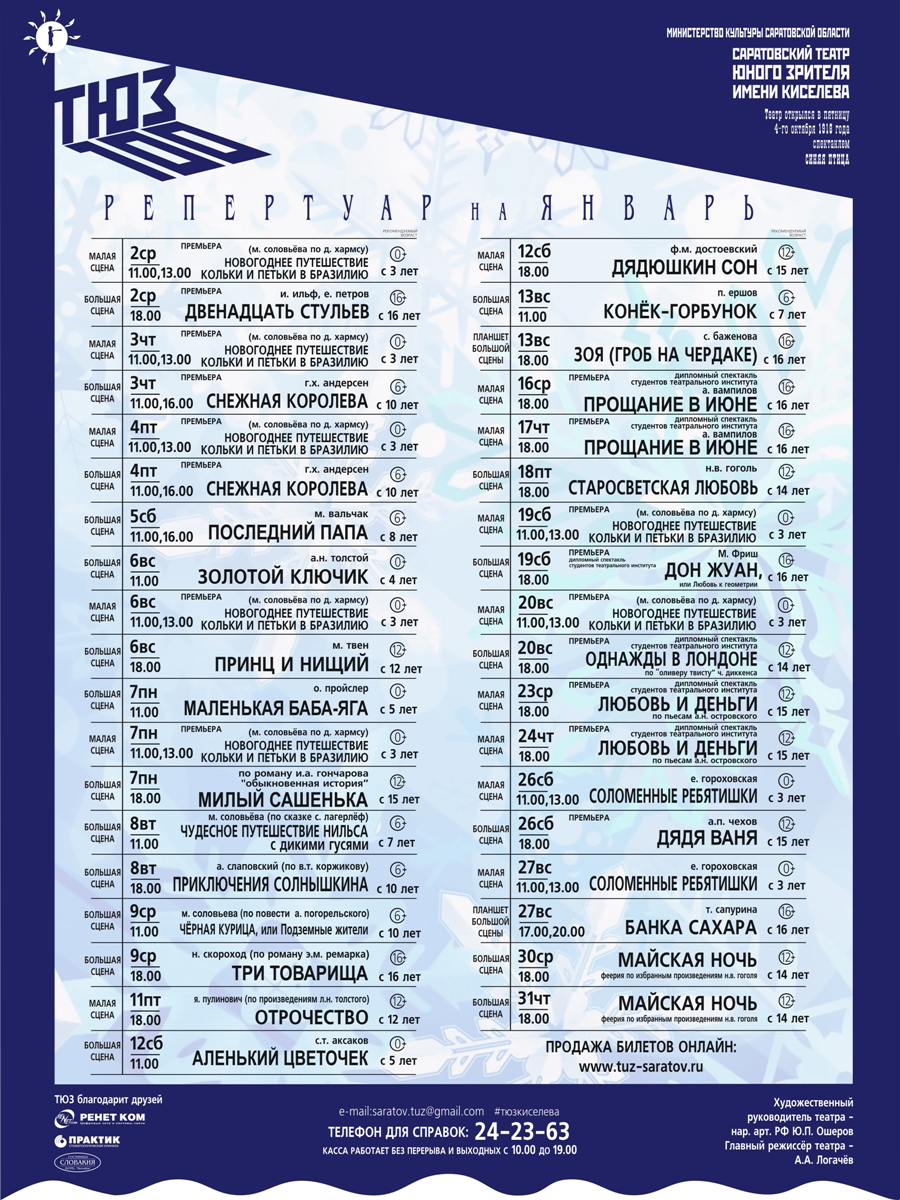 Репертуар Саратовского ТЮЗа на январь 2019 года