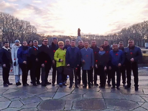 Представители саратовской делегации в рамках визита в Германию возложили цветы к мемориалу памяти советского солдата в Трептов-парке в Берлине, почтив память воинов, погибших в Великой Отечественной войне.