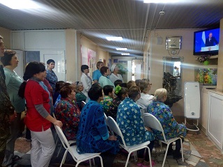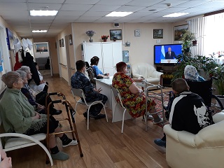 Выступления президента всегда вызывают огромный интерес у проживающих дома-интерната. Вот и в этот день, у проживающих не возникло разногласий по поводу того, какой смотреть телеканал. Все с нетерпением и большим вниманием ожидали начала трансляции.