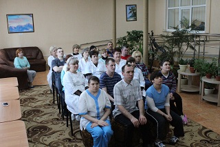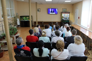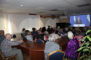 20 февраля послушать послание Президента у экранов телевизоров собрались проживающие и сотрудники всех трех корпусов Энгельсского дома-интерната.