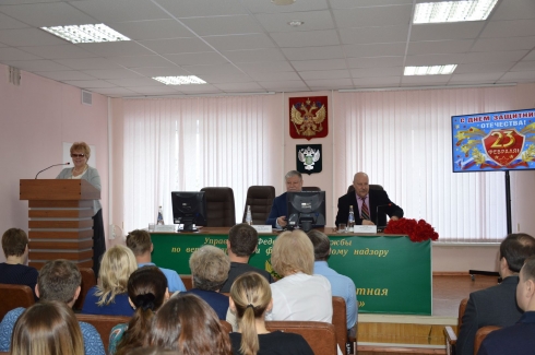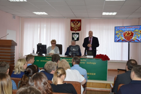 22 февраля в зале заседаний ФГБУ «Саратовская МВЛ» состоялось общее собрание коллектива лаборатории, посвященное предстоящему празднованию Дня защитника Отечества, на которое был приглашен Руководитель Управления Россельхознадзора по Саратовской области А.В. Игонькин.