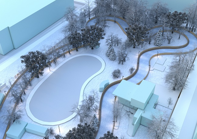 На участке между Тау Галереей и улицей Дубовикова площадью полтора гектара будут построены ледовый каток площадью 3500 квадратных метров для активного зимнего отдыха, два открытых бассейна – взрослый площадью 650 квадратных метров и детский площадью более 100 квадратных метров. Будут организованы зеленая зона, основу которой составят благородные хвойные деревья, и зона фудкорта. Площадь объекта почти 14 тысяч квадратных метра.