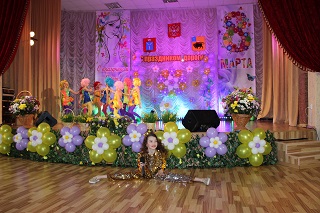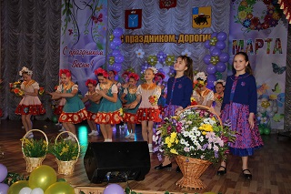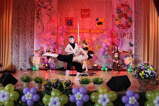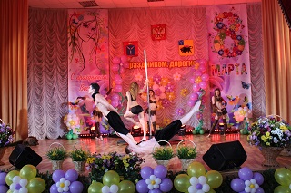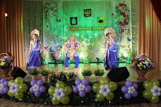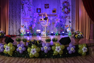 В этот день было решено отметить двойной праздник: прошедший День настоящих мужчин и наступающий День прекрасных женщин. Актовый зал утопал в весенних цветах, которые наполнили его тонким ароматом и особой атмосферой.