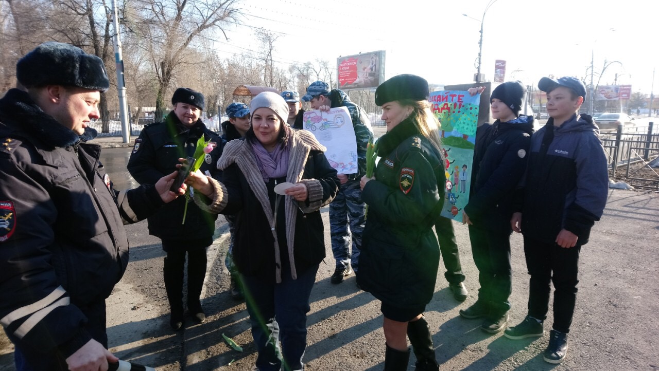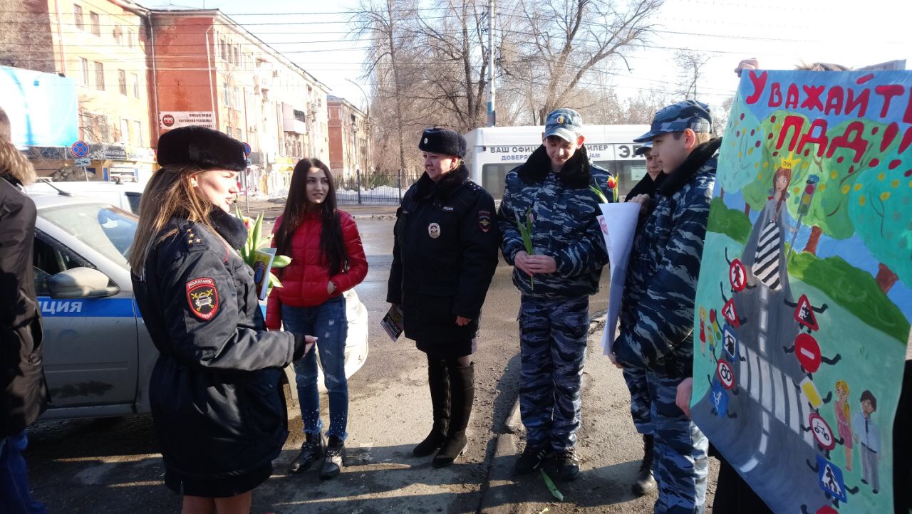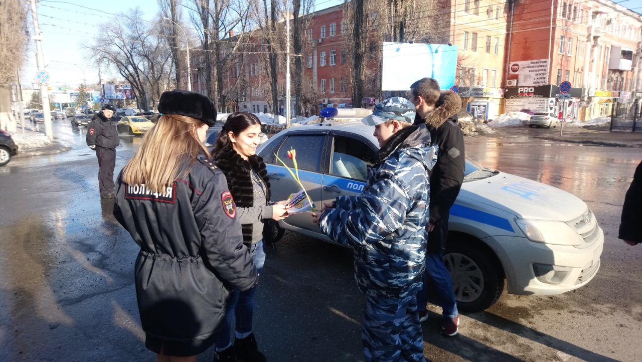 Сотрудники Госавтоинспекции города Саратова совместно с инспектором ПДН отдела полиции Заводского района,представителями «Дорожного патруля», отрядами Юных инспекторов дорожного движения и Юных друзей полиции провели поздравительную акцию «Цветочный Патруль».
