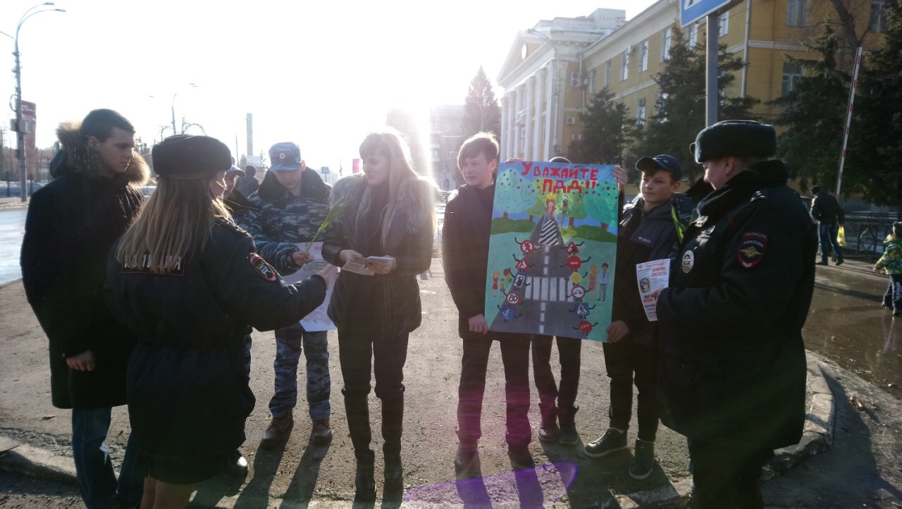 Встав на оживлённым перекрёстке, дети подходили как к пешеходам так и к водителям прекрасного пола,поздравляли их с наступающим Женским днём,дарили цветы,и конечно же напоминали всем о соблюдении правил поведения на дороге,а также вместе с инспектором ПДН объясняли как не пострадать от мошеннических действий.