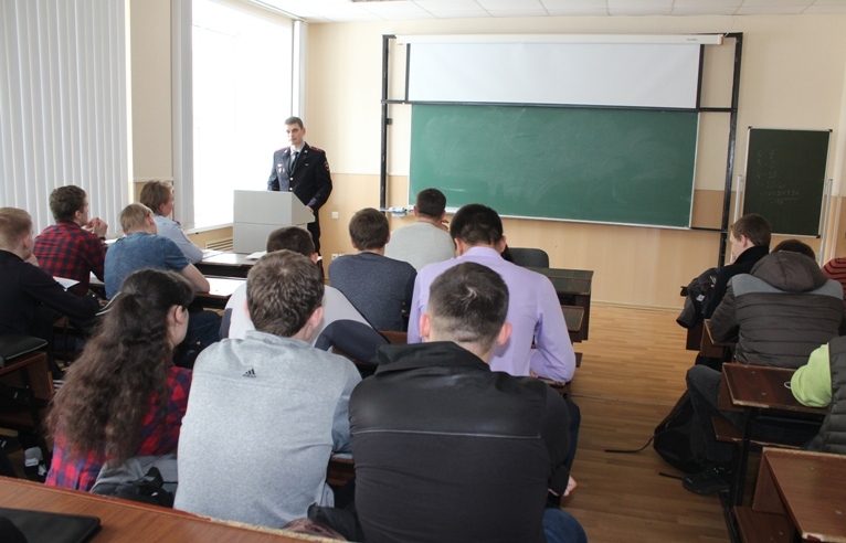 Начальник отделения кадров ОРЛС УМВД России по г. Саратову майор внутренней службы Игорь Щербинин рассказал студентам о порядке поступления на службу в органы внутренних дел, о требованиях, предъявляемых к кандидатам, а также об условиях поступления в вузы системы МВД РФ, социальных гарантиях курсантов и сотрудников полиции.