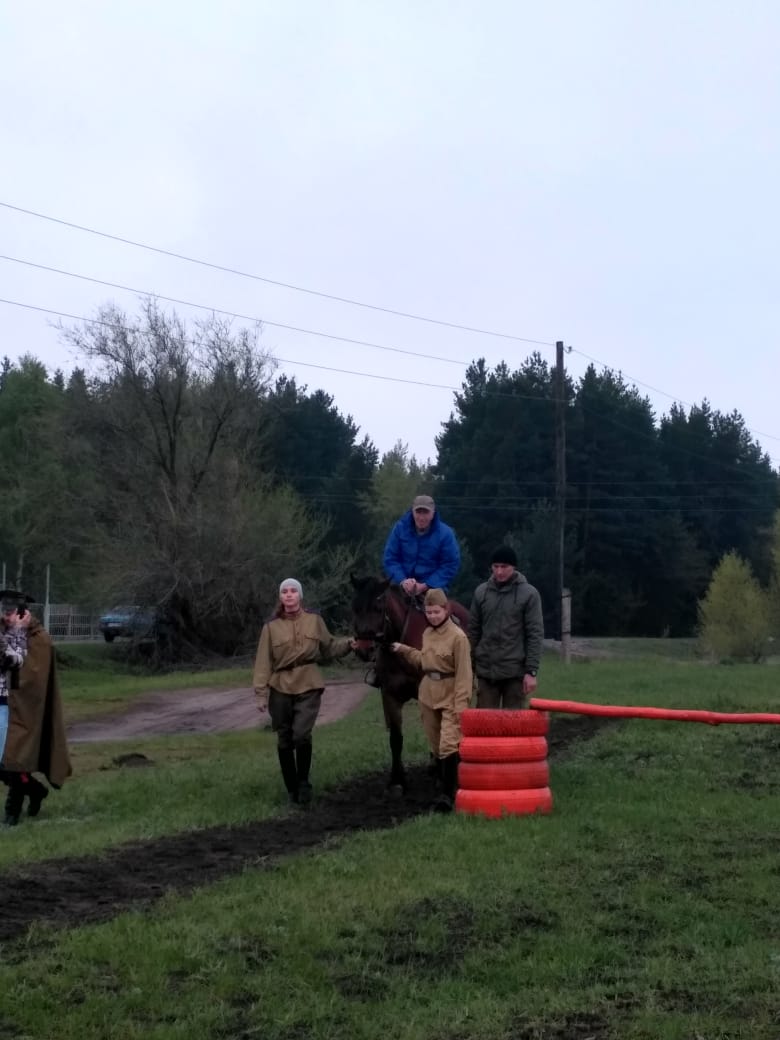 Так, 2 мая состоялся выезд проживающих учреждения в с. Репное на конно — спортивную площадку, где состоялись показательные выступления юных спортсменов под руководством Наталии Желновой. Мероприятие началось с торжественной встречи Знамени Победы, которое привезла Анастасия Байбара на коне по кличке Диамант! Почетный караул (Петров Даня, Морозова Ирина, Михайлова Яна) отдал честь Знамени шашками и показал выступление по джигитовке на Малышке (она же Пончик)! Анастасия Байбара показала гостям прыжки через препятствия. Бурными апплодисментами встречали собравшиеся спортсменов с их четвероногими друзьями!