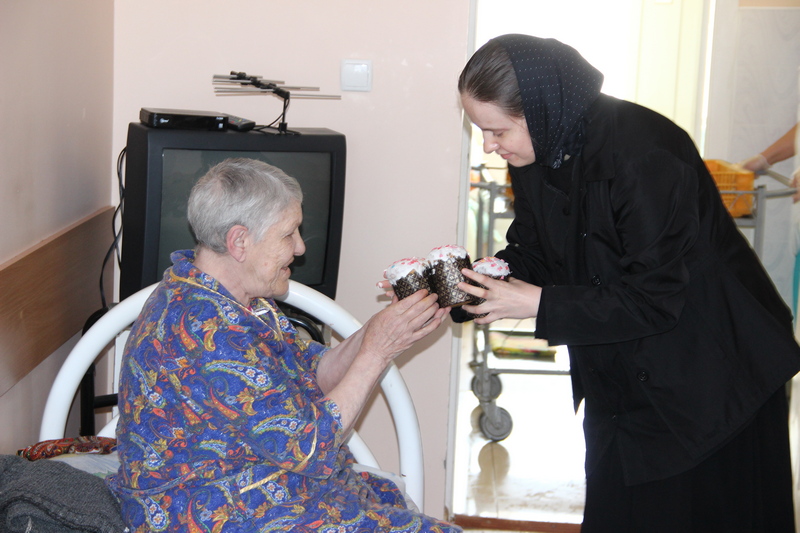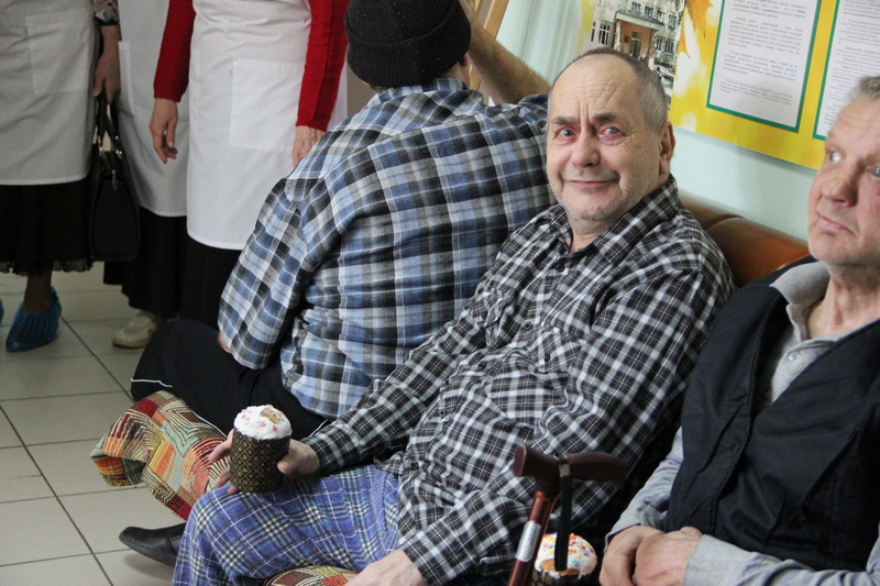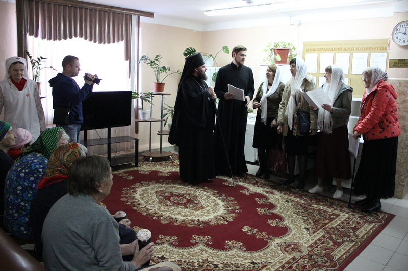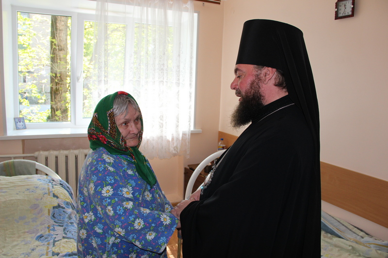 Владыка посетил отделения милосердия, где поздравил всех присутствующих со светлым Праздником Пасхи и заверил каждого, что Православная Церковь не оставляет без внимания людей, которые находятся в домах-интернатах. Всем жителям учреждения были розданы праздничные куличи.
