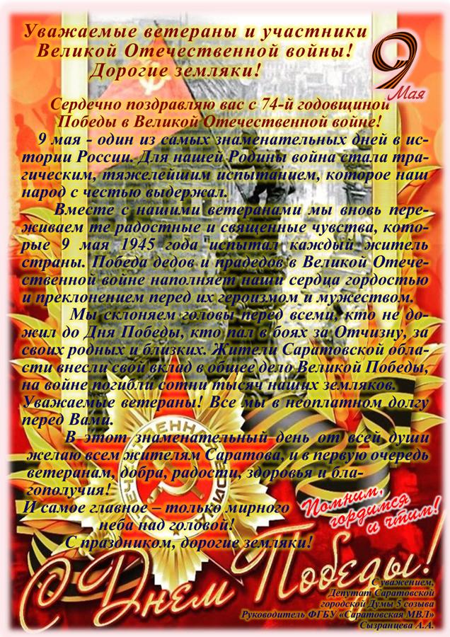 Поздравление с Днём победы 9 мая от Сызранцевой А.А.