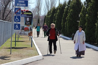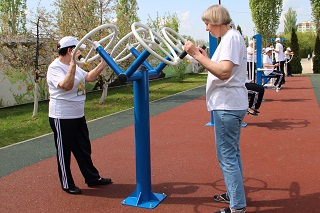 Одними из первых к тренировке на тренажерах приступили участники социально-значимого проекта «Оздоровительная площадка «Территория долголетия», который успешно реализуется в доме-интернате с февраля этого года и включает в себя целый комплекс разнообразных методик и технологий по работе с гражданами. В рамках проекта проходят познавательные лекции «Школа здоровья 80+», занятия лечебной физкультурой и дыхательной гимнастикой, а также релаксационные оздоровительные сеансы в соляной пещере «Морское царство». С наступление теплой погоды начались занятия скандинавской ходьбой и велопрогулки на устойчивых трехколесных велосипедах. А теперь, с мая месяца, пожилые граждане получили возможность физической активности на тренажерной площадке.