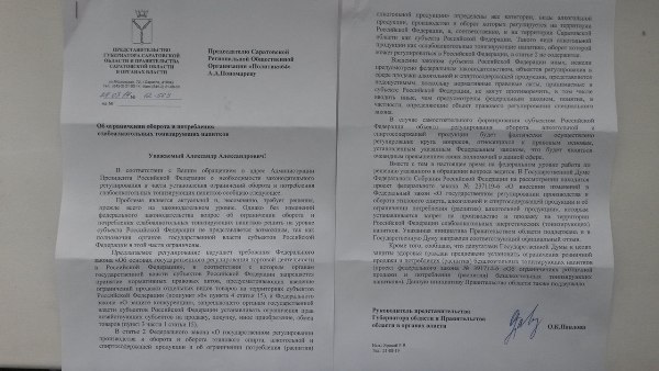 Инициатива СРОО "Политика64" Об ограничении оборота и потребления слабоалкогольных тонизирующих напитков, одобрена Государственной Думой и на данный момент находится на рассмотрении в Правительстве.