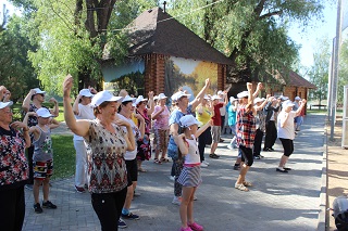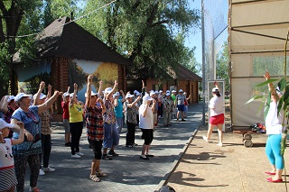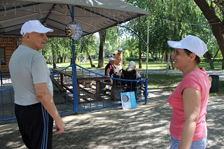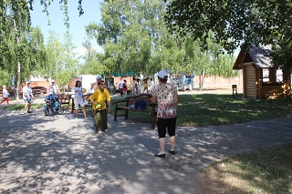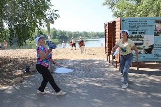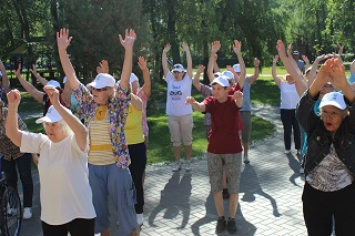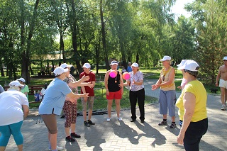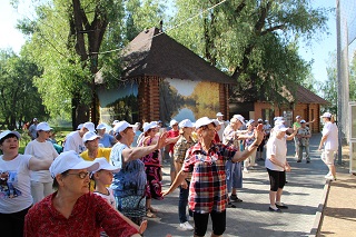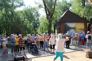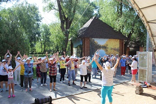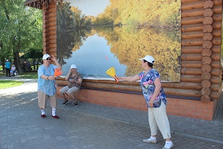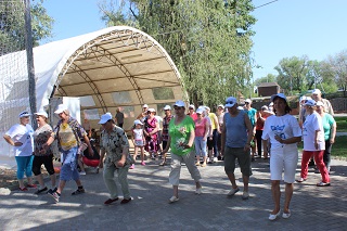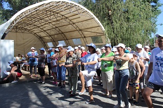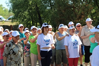 В начале праздника танцевальный флеш-моб зарядил всех участников хорошим настроением и бодростью духа. Не смотря на свой возраст, участники мероприятия с удовольствием проявляли себя в спортивных состязаниях. Спортсмены-любители разделились на команды и с азартом выполняли задания веселой эстафеты. Как всегда бывает в таких случаях – победила дружба. А потом все играли в спортивные игры – дартс, бадминтон, тарелки ловушки, мячи. Любители скандинавской ходьбы отправились на прогулку вдоль реки.