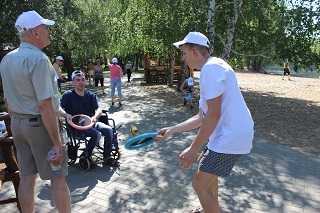 В этот раз к участникам проекта присоединились инвалиды-колясочники, проживающие в интернате. Они стали активными болельщиками, и даже приняли участие в некоторых видах активностей.