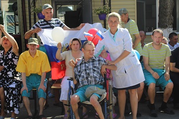 В это время для проживающих 3 корпуса состоялась концертная программа «Россия – Родина моя!», в которой прозвучали песни о Родине, семье, России. Эти замечательные композиции для зрителей исполнили гости из МДОУ «Детский сад № 45», МБОУ «Средняя общеобразовательная школа № 31», МБОУ «Средняя общеобразовательная школа № 4» и ЭПО «Сигнал». Также в праздничном концерте приняли участие самодеятельные артисты дома-интерната - вокальный коллектив «Восторг». На протяжении всего праздника проводилась акция «Триколор»: присутствующим раздавались флажки и воздушные шары.