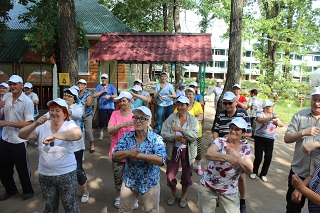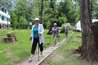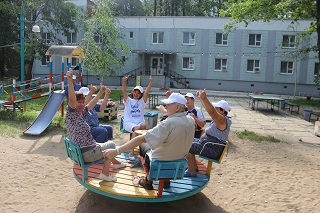 На оздоровительной площадке ведущие специалисты-медики проводят курс лекций «Школа здоровья 80+» о здоровьесберегающих технологиях, проходят занятия лечебной физкультурой, дыхательной гимнастикой, скандинавской ходьбой в клубах оздоровительных активностей. Участники проекта имеют возможность посещать релаксационные оздоровительные сеансы в уникальной специально оборудованной соляной комнате «Морское царство», совершать велопрогулки на трехколесных велосипедах и заниматься на современных спортивных тренажерах, установленных на открытой территории дома-интерната.