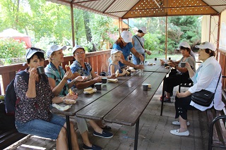 После спортивных состязаний и активного отдыха, как и полагается на природе, пришло время пикника. За столом делились впечатлениями, эмоциями, не смолкали шутки и смех.