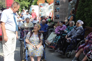 С приветственным словом к проживающим обратился директор Энгельсского дома-интерната Сергей Владимирович Сафошкин. Он пообщался с постояльцами дома-интерната, выслушал их пожелания и настроения, постарался уделить внимание каждому и зарядить всех положительными эмоциями. Директор отметил, что для инвалидов-колясочников и пожилых людей, которым трудно ходить, лучшее подкрепление здоровья – это солнце, воздух, движение. Это те очевидные радости, которые обычный человек порой даже не замечает, а человек с ограниченными физическими возможностями очень ценит. В Энгельсском доме-интернате созданы все условия для передвижения и комфортной среды проживания маломобильных граждан, учреждение постоянно развивается и преображается. Кроме того, сотрудники делают все возможное, чтобы помочь постояльцам вести активную жизнь, не оставаться спрятанными от других людей и интересных событий.