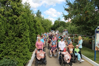 Погода в этот день благоприятствовала прогулке, летний день выдался теплым и солнечным. В передвижении колясок маломобильным проживающим помогали врачи, медсестры, социальные работники и сотрудники, проходящие альтернативную государственную службу в учреждении. А инвалиды на колясках с электроприводом передвигались самостоятельно.