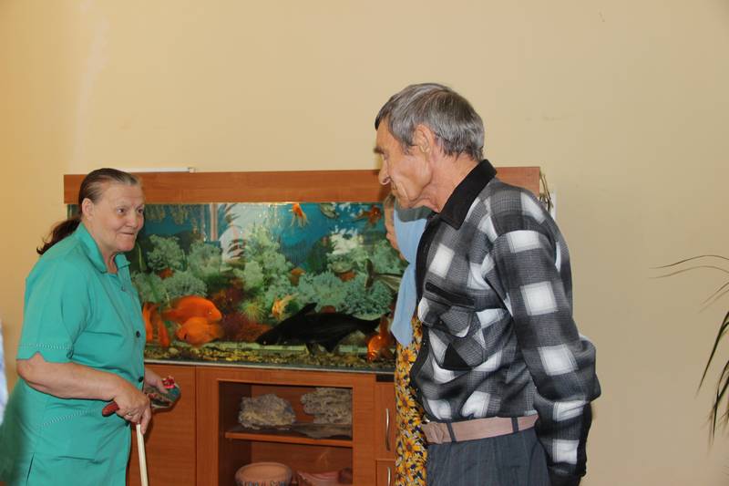 Александр Юрьевич показал повседневную жизнь епархии: канцелярию, в которой на большой карте отмечено почти 90 действующих храмов, зал для приёма официальных гостей, клуб, в котором проводятся различные мероприятия и концерты. Жители дома-интерната с большим интересом слушали рассказ о священниках, служивших в разные годы в Балашовском районе, о картинах и фотографиях, размещённых на стенах. Особое внимание группы привлекла картина, изображающая Богоматерь: она выполнена специальными красками, которые разведены на воске и при высоких температурах «плачет».