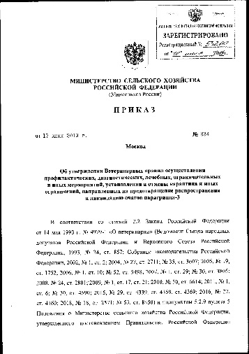 Приказом Министерства сельского хозяйства РФ от 17 июня 2019 г. № 334 утверждены Ветеринарные правила осуществления профилактических, диагностических, лечебных, ограничительных и иных мероприятий, установления и отмены карантина и иных ограничений, направленных на предотвращение распространения и ликвидацию очагов парагриппа-3.