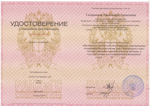В период с 15 июля 2019 года по 19 июля 2019 года в Поволжском институте управления имени П.А. Столыпина – филиале ФГБОУ ВО «Российская академия народного хозяйства и государственной службы при Президенте Российской Федерации» проходили курсы повышения квалификации по дополнительной профессиональной программе «Организация противодействия коррупции в организациях, создаваемых для выполнения задач, поставленных перед государственными и муниципальными органами, в государственных и муниципальных учреждениях».