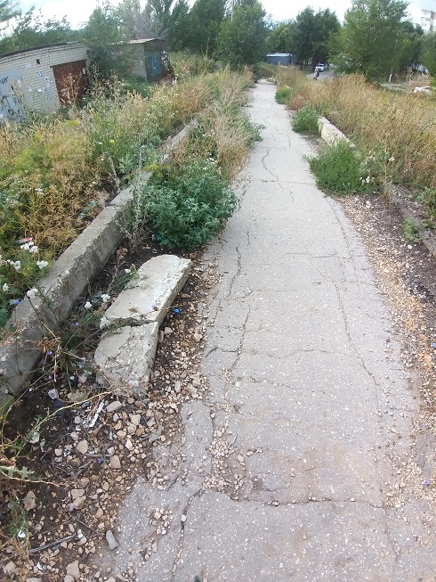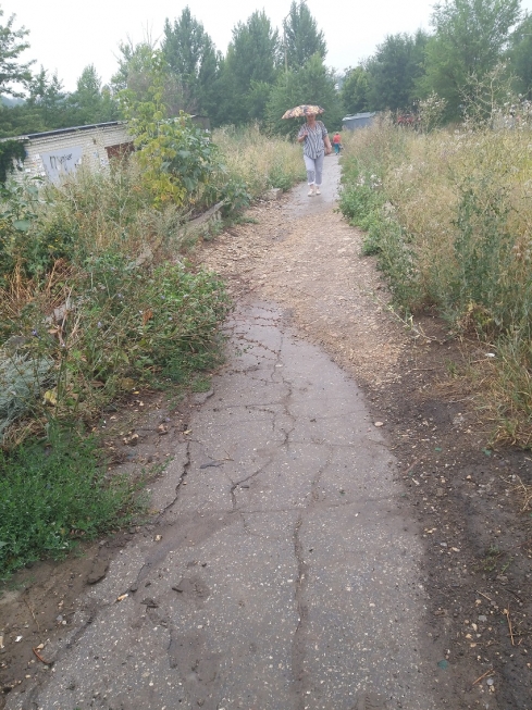 В связи с бездействием руководства Ленинского района, обращаюсь к Вам по вопросу ненадлежащего содержания городского пешеходного тротуара в Ленинском районе г. Саратова, который проходит через незаконные гаражи и погреба от торца дома 2 по улице Бардина до магазина продукты по ул. Бардина дом 1. Асфальт разрушен, из него растет трава, бордюрный камень отлетел и лежит на пути пешеходов, а где и вовсе отсутствует.
