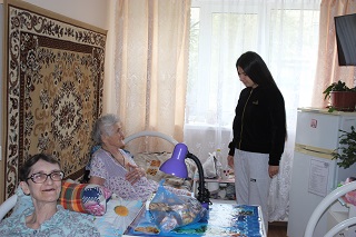 Для маломобильных граждан было организовано поздравление с праздником прямо в жилых комнатах. Волонтеры из ГАПОУ СО «Энгельсский механико-технический техникум» и представители следственного управления по Саратовской области тепло поздравили проживающих и подарили памятные и сладкие подарки.