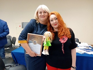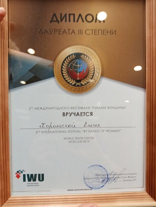 Заслуженным итогом и общим решением международного жюри сотруднице Энгельсского дома-интерната, Елене Хорольской, вручен Диплом лауреата III степени II Международного фестиваля декоративно-прикладного искусства «Руками женщины».