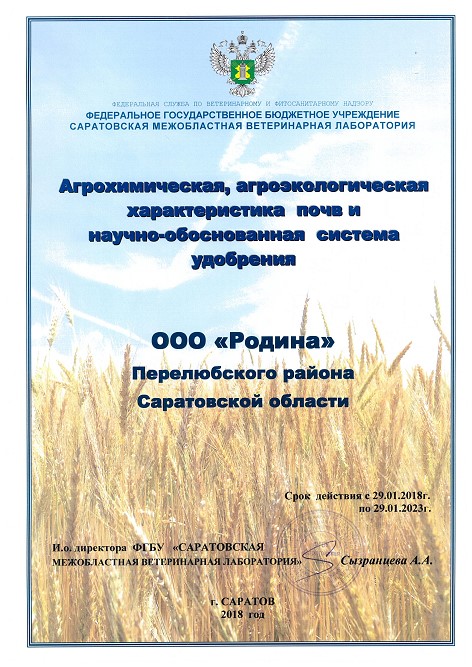 На основании проведенных данных агрохимических и химико-токсикологических исследований отобранных почвенных образцов при проведении комплексного агрохимического обследования земель сельскохозяйственного назначения, отдел агрохимического анализа ФГБУ «Саратовская МВЛ» составляет паспорта полей.