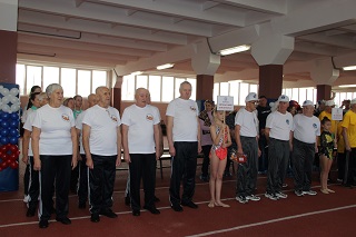 Мероприятие началось с торжественного парада и построения спортсменов. С приветственным словом к участникам Iй Спартакиады для граждан старшего поколения, проживающих в домах-интернатах, обратился начальник управления по физической культуре, спорту, молодежной политике и туризму администрации Энгельсского муниципального района Евгений Сергеевич Науменко. Он пожелал участникам мероприятия спортивных побед, новых личных рекордов и хорошего настроения.