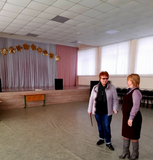 После официальной части, директор школы рассказала депутату о произошедших изменениях, о произведенных в 2019 году ремонтных работах, и с большой гордостью показала обновленный актовый зал.