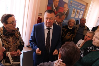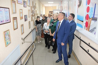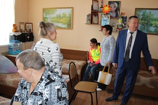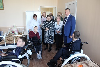 Встречали гостей директор дома-интерната Сергей Владимирович Сафошкин, его заместитель, возглавляющий третий корпус, Дмитрий Владимирович Горячев и все сотрудники учреждения.