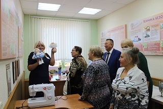 В швейной мастерской «Умелица» девушки работали над созданием очередной текстильной куклы. Мастерицы с удовольствием показали всю коллекцию созданных интерьерных кукол, а Сергей Владимирович рассказал, что творчество девушек высоко оценили на Ярмарке ремесел, изобразительного искусства и инклюзивного творчества «Мир особых мастеров» в Казани и на Международном фестивале декоративно-прикладного искусства «Руками женщины» в Москве, где куклы участвовали в выставках.