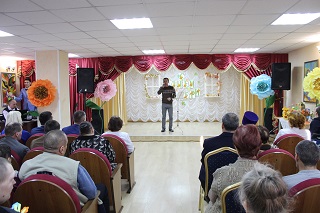 Мероприятие началось в уютном актовом зале учреждения, где для собравшихся была организована праздничная концертная программа. Открыл торжественное мероприятие директор учреждения, который рассказал о том, как и чем живет сегодня дом-интернат, каких успехов удалось достичь, какие дальнейшие планы и перспективы развития у интерната.