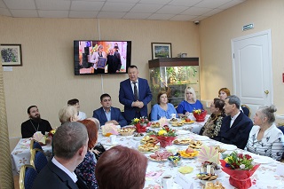 К словам Сергея Владимировича, присоединился настоятель храма «В честь иконы Успения Пресвятой Богородицы» иерей Дмитрий Попеко. Отец Дмитрий давно и крепко сдружился с проживающими и сотрудниками дома-интерната, проводит службы в Домовом храме учреждения, хорошо знает уклад жизни каждого. Он рассказал, что очень рад, что для проживающих здесь создана по-настоящему домашняя обстановка. Здесь их любят и окружают заботой. Поблагодарил Сергея Владимировича за оказание помощи Епархии и храму, настоятелем которого является.