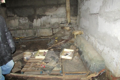 - подвал, начиная от входа, заполнен канализационными стоками; глубина воды 50 см – из-за этого не смогли пройти по всему подвалу.
