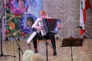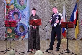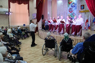 Вокальный коллектив «Надежда» исполнил прекрасные душевные песни, как современные, так и проверенные временем старые хиты. Проживающие с воодушевлением подпевали артистам. Талантливые вокалисты Тамара Босенко и Геннадий Рогов порадовали исполнением любимых песен, слова которых окунули зрителей в теплые воспоминания из детства.