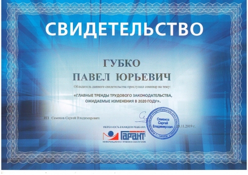 28 ноября 2019 года в компании «Гарант-Семинары» проходил семинар «Главные тренды трудового законодательства, ожидаемые изменения в 2020 году». Семинар проводил эксперт, консультант, автор и ведущий семинаров по вопросам кадрового делопроизводства и трудового законодательства Кофанов Д.И.