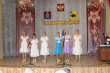 А затем всех пригласили на праздничный концерт, посвященный героическому подвигу, мужеству и доблести ветеранов Великой Отечественной Войны, сохранивших наш мир. Для гостей артисты Саратовского театра оперетты с удовольствием исполнили песни военных лет: «Идет солдат», «Синенький скромный платочек», «Жди меня», «Журавли» и многие другие…