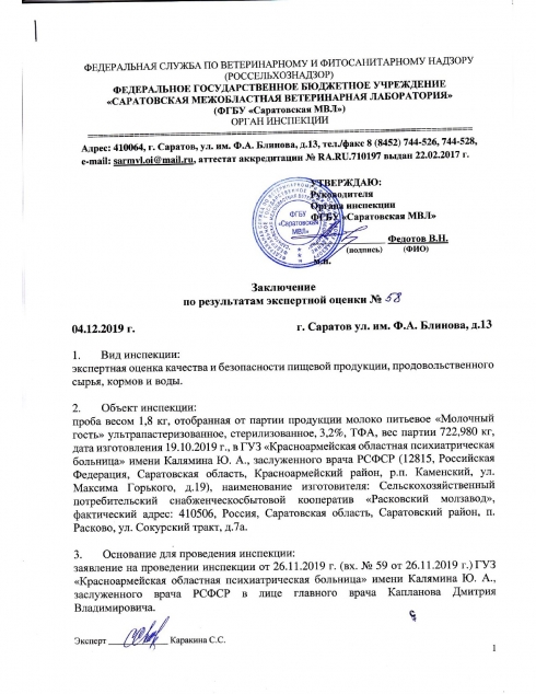 В соответствии с обращением юридического лица в декабре текущего года Органом инспекции ФГБУ «Саратовская МВЛ» проведена экспертная оценка качества молока питьевого, поставленном юридическому лицу местным производителем.