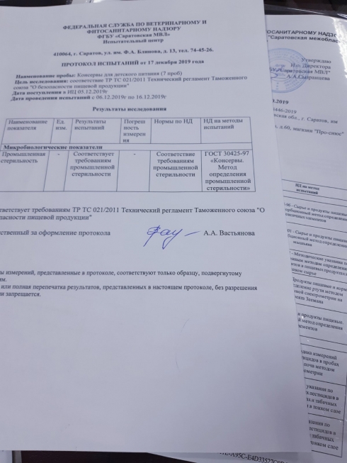 Были отобраны и отправлены на экспертизу несколько видов овощных пюре торговых марок: «Фрутоняня», «Semper», «Yipp», «Спеленок», «Расти большой» и «Агуша», приобретенных в магазине «Детский мир».