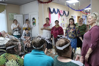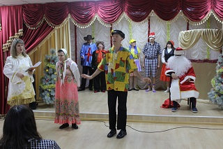 А накануне, праздничные мероприятия прошли во втором и третьем корпусах дома-интерната. Новогодние предсказания от сказочной цыганки, игра в снежки, танец волшебных снежинок, веселые гномики и снеговики, поиски Снегурочки - так весело провели время проживающие во втором конкурсе. А ребята из третьего корпуса вместе со своими родители попали в загадочный мир театрализованной постановки «Путешествие по сказкам», которую подготовили и провели проживающие - участники театрального коллектива «Маска» и сотрудники учреждения. В сказке они повстречали Бабу Ягу, Ведьму, Кощея, Соловья – Разбойника и, конечно, Деда Мороза и Снегурочку; поучаствовали в игровых конкурсах, ответили на новогодние загадки. Кроме того, состоялся традиционный «Новогодний огонек» с чаепитием.