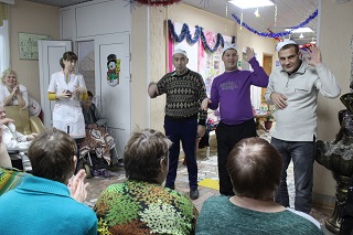 В этот раз артисты представили новогоднюю музыкальную фантазию, любимую не одним поколением о необыкновенных, очень веселых приключениях «По следам бременских музыкантов…». Все роли в театрализованном представлении сыграли актеры-любители из числа сотрудников, проживающих и работников, проходящих альтернативную гражданскую службу в учреждении, многие из которых вышли на сцену впервые. А сценарий дополнялся на каждой репетиции, ведь каждый актер хотел сделать свою роль яркой и незабываемой. И результат не заставил себя ждать - музыкальная пьеса была разыграна блестяще и имела ошеломительный успех у зрителей.