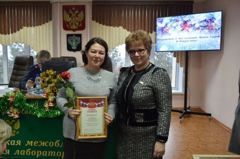 Руководитель ФГБУ «Саратовская МВЛ» А.А. Сызранцева подвела предварительные итоги деятельности учреждения за 2019 год: всего поступило около 130 тысяч проб различного материала, по ним проведено около 400 тысяч исследований в области ветеринарии, фитосанитарных исследований, земельного контроля, по результатам проведенных исследований получено около 49 тысяч положительных результатов, выявляемость по всем видам испытаний составила 14,3%. В своей речи директор лаборатории отметила важность четкого взаимодействия службы и учреждения для результативной плодотворной работы в грядущем году, а также поблагодарила коллектив за успешное завершение намеченных целей. Александра Алексеевна искренне пожелала всем сотрудникам управления и лаборатории в Новом году здоровья, благополучия, достатка, добрых отношений с родными и близкими.