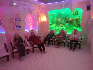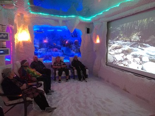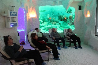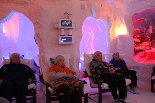 В первых числах нового года всем желающим и гостям Энгельсского дома-интерната предложили стать участниками акции и воспользоваться услугами гало-центра бесплатно. За два дня соляную пещеру посетили более 150 человек. В уютной атмосфере оздоровительного центра «Гармония» посетители позволили себе отдохнуть от городской суеты, механического шума и загрязненной атмосферы, во время сеанса совершили подводное путешествие по Красному морю и познакомились с его удивительными обитателями и красивейшей фауной. А насытив организм полезными веществами, гости центра с удовольствием отдыхали в зимнем саду, любовались необычными тропическими растениями. Кто-то коротал время за чашкой ароматного чая или натурального кофе, а некоторые оценили на себе действие музыкального массажного кресла. Сотрудники оздоровительного центра рассказали гостям о положительном влиянии искусственного соляного микроклимата на организм и раскрыли секрет – на стенах пещеры стали расти соляные нити "паутинки" - аналоги сталагмитов в природных пещерах, которые являются одним из показателей качественно оборудованной соляной комнаты и подтверждают правильно созданную атмосферу.