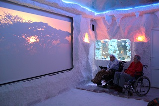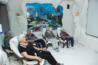 В прошлом году благодаря участию в проекте «Оздоровительная площадка «Территория долголетия», реализация которого осуществлялась с использованием гранта Президента Российской Федерации, была открыта соляная пещера «Морское царство». Подобный объект является уникальным и единственным, созданным при учреждениях социального обслуживания нашего региона. Оздоровительные эффект от галотерапии известен каждому и практически не имеет противопоказаний. А главное – это немедикаментозный метод лечения и профилактики многих заболеваний. Сеансы в соляной пещере снимают усталость и раздражительность, дарят положительные эмоции, очищают организм от токсинов и аллергенов.