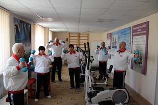 Проживающие Энгельсского дома-интерната служат для гостей примером для подражания в стремлении к отличной физической форме и активному долголетию. Мягкая зима, установившаяся в этом году, позволяет поклонникам скандинавской ходьбы совершать прогулки с пользой для здоровья. На территории интерната действует открытая спортивная площадка, оборудованная современными безопасными тренажерами. Но пока стоит прохладная погода, занятия проводятся внутри здания под руководством опытного инструктора в тренажерном зале.