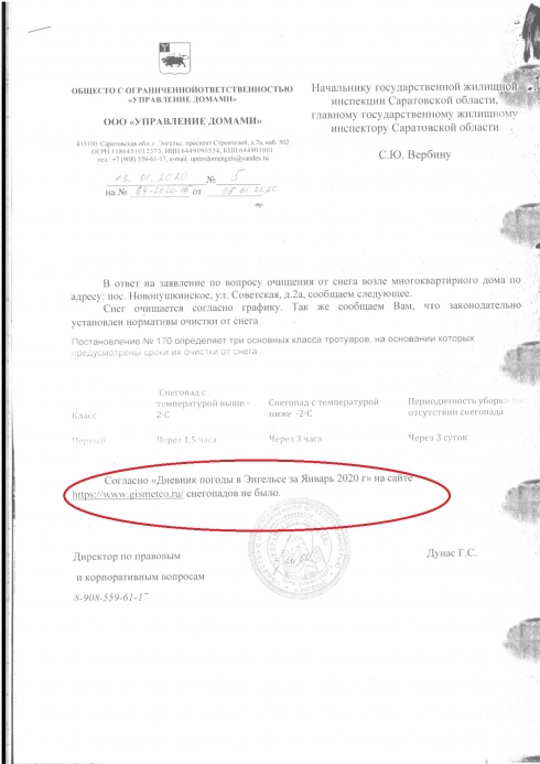 УК "Управление домами" в Энгельсе не исполняет своих обязательств и позволяет себе "троллить" жильцов с попустительства ГЖИ. Вот такие ответы получаем от УК, по их мнению, снега в январе еще не было, при этом на скриншоте с сайта, на который они ссылаются, все прекрасно видно. Снег чистят и убирают сами жители, а УК лишь присваивает собранные денежные средства.